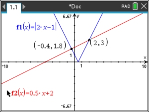 The TI-Nspire CS II non-CAS treats absolute value as a numerical piecewise function (in parts), giving one answer (which is the answer closest to the origin).